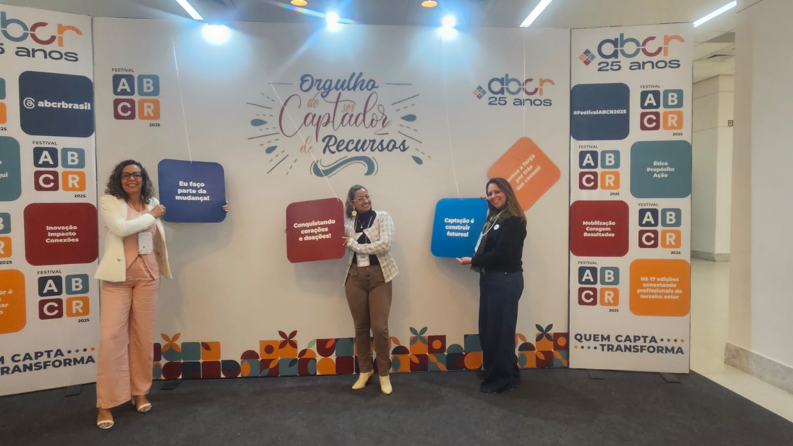O Grupo de Apoio à Criança com Câncer de Sergipe (GACC-SE) participou do ‘Festival ABCR 2025’, o maior evento de captação de recursos da América Latina e foi representado pela diretora geral, Ulla Ribeiro, juntamente com a equipe de Captação de Recursos, Regimari Dias e Sineide Gomes. O encontro, que reuniu profissionais de todo o país, teve o objetivo de fortalecer, qualificar e transformar ainda mais o terceiro setor. Foram dias de muito aprendizado, troca de experiências e conexões valiosas, reafirmando que “Quem capta, transforma!”.